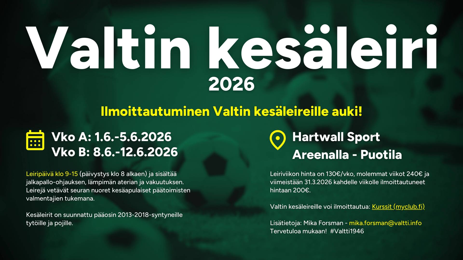 Valtin kesäleireille voi ilmoittautua: Kurssit (MyClub.fi)